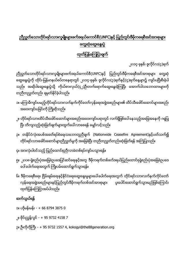 Jul 09, 2013 – UNFC Press Release (Burmese)